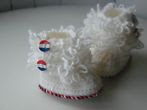 - Prijs: ⬠5,00 - Datum: Gisteren - Schattige gehaakte baby uggs met lusjes Her laarsje is gehaakt van Acryl wol Het laarsje heeft rood wit blauwe knoopjes het zooltje heeft een accent van rood wit blauwe wol De...